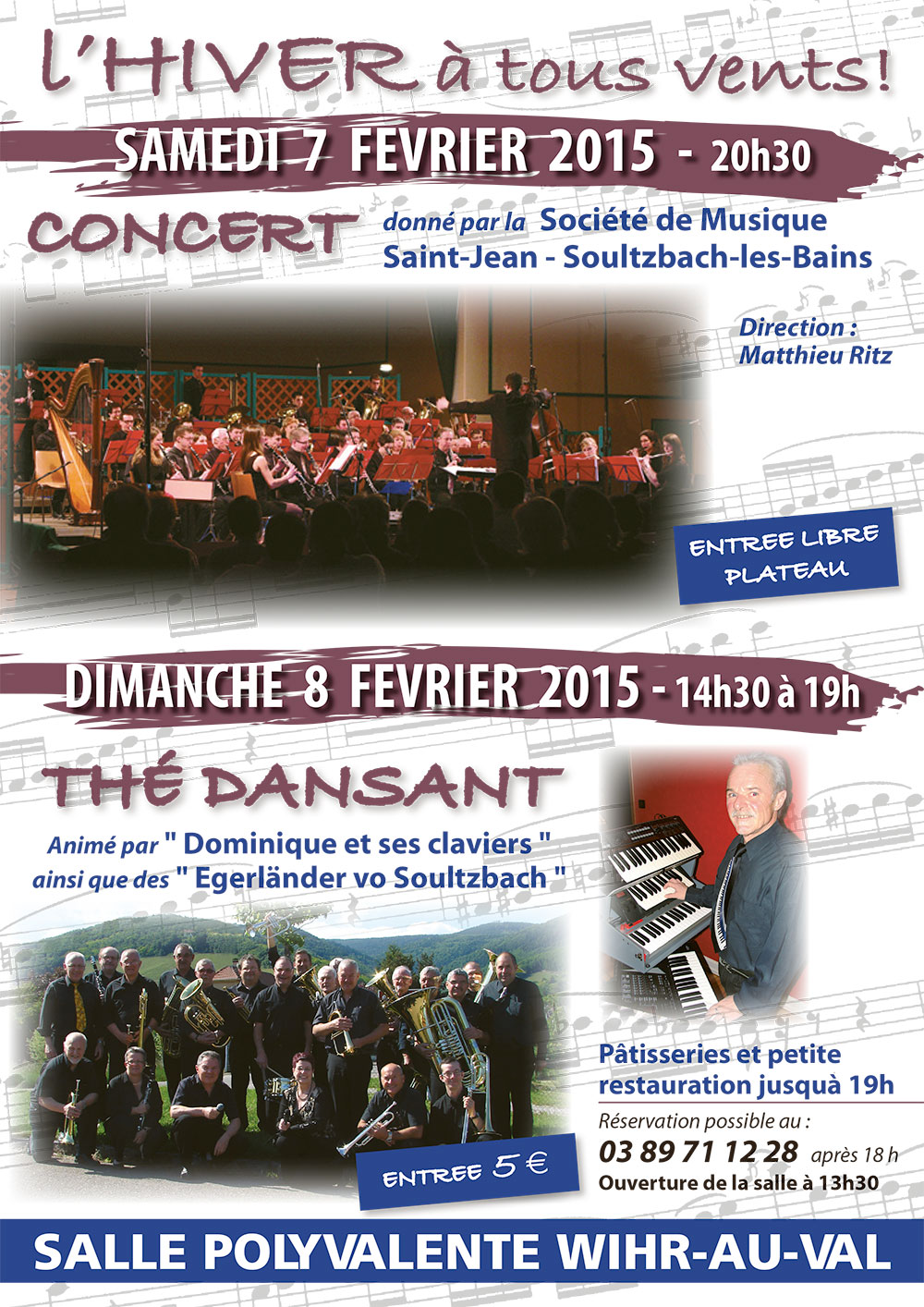 Le dimanche 08 février, se tiendra le Thé Dansant animé par les Egerländer vo Soultzbach, dirigé par Denis Kammerer. Le Thé Dansant se déroulera également à la Salle Polyvalente de WIHR-AU-VAL, à partir de 14h30.