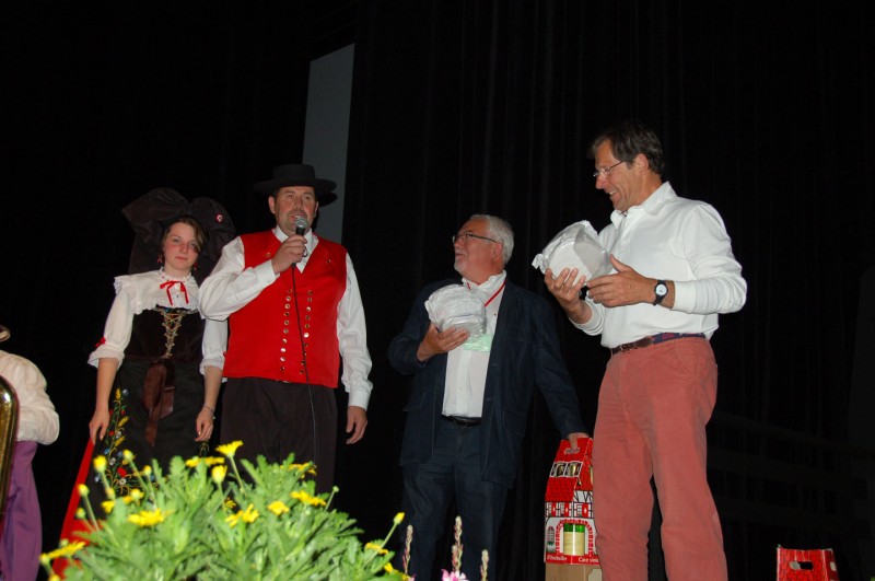 Bertrand offrant les cadeaux au Maire de Pornic ainsi qu'au Président de l'Harmonie de Pornic